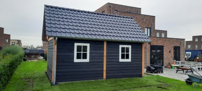 Een zelfde schuur met een buitenafmeting van 5 x 9 meter kost € 22.450,- incl. btw.